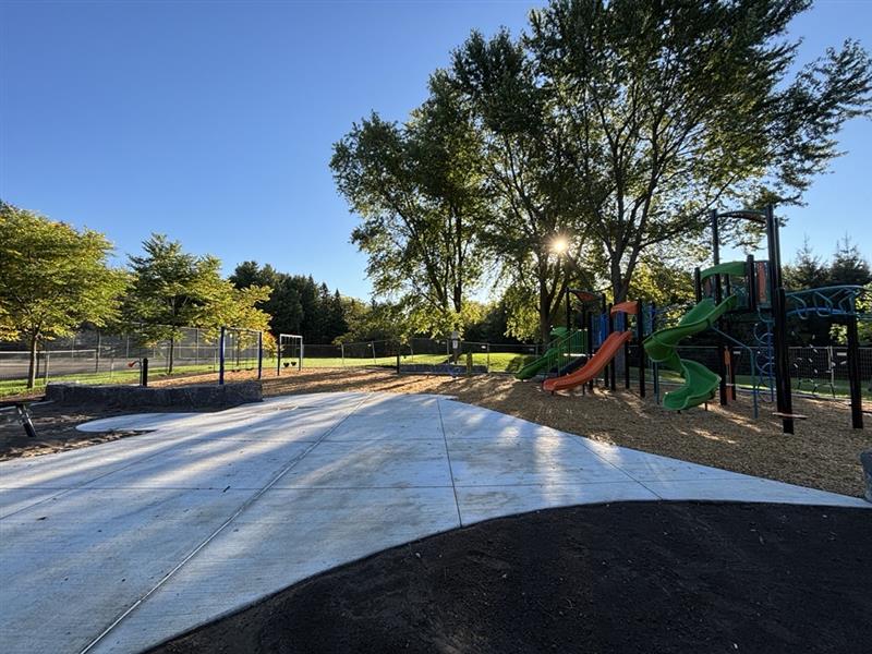 Wheelchair-accessible protective surfacing has been installed to enhance safety and accessibility for all residents. Parking lot improvements and line marking will occur soon, followed by sod restoration to complete the project.